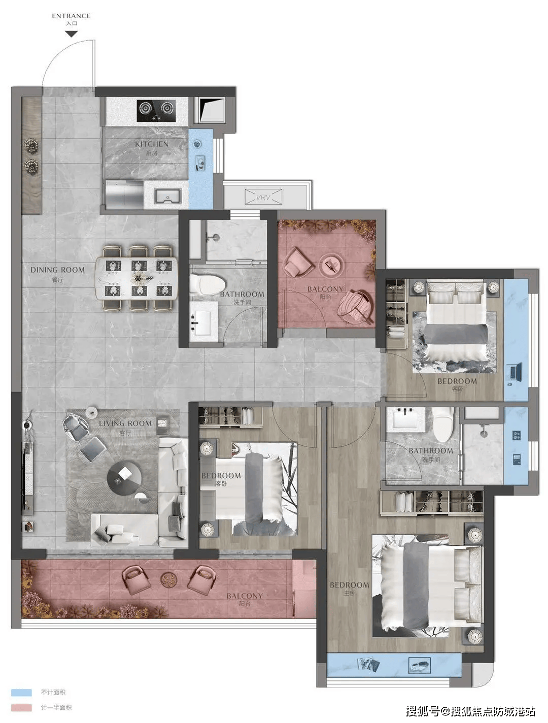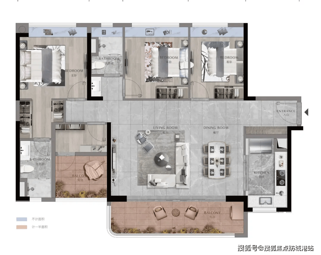 105㎡三房两厅两卫户型:该户型为刚需首选。